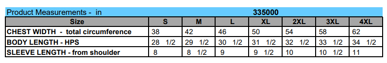 Click to view sizing chart.