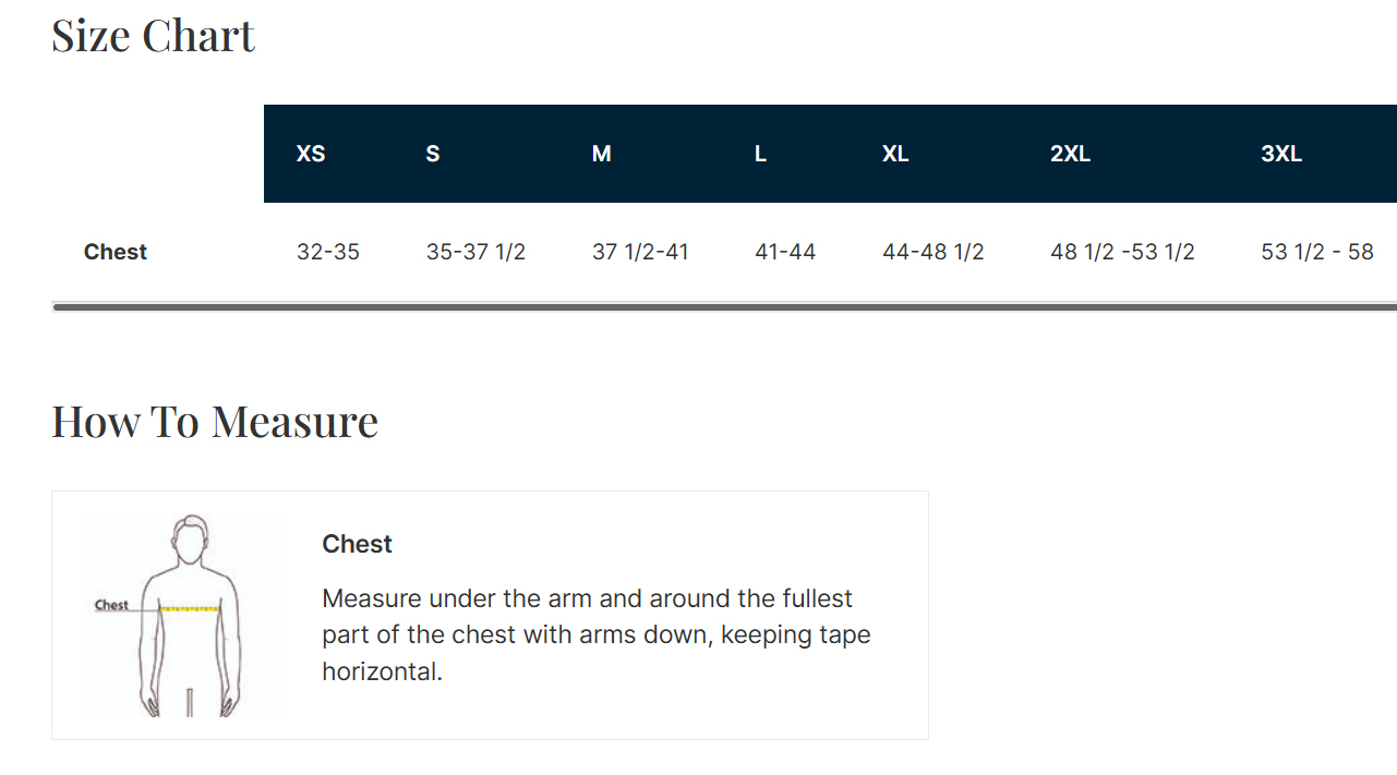 Click to view sizing chart.